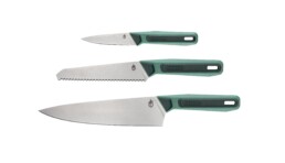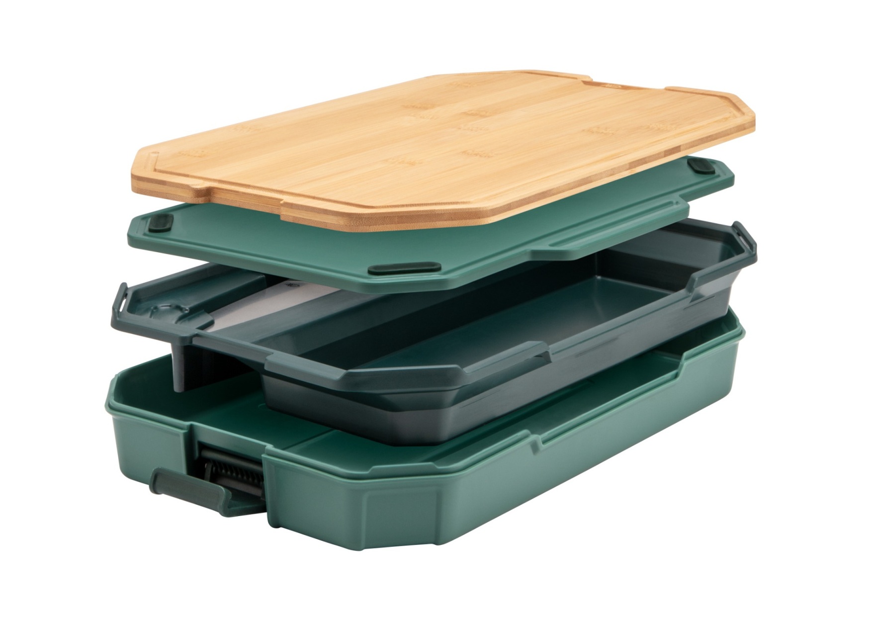 Zestaw do krojenia ComplEat Cutting Board Set to idealne rozwiązanie na kemping. Zawiera dwie dwustronne deski (bambusowa i polipropylenowa), nóż do obierania 8 cm i nóż szefa kuchni 15 cm. Stal nierdzewna 4116 zapewnia ostrość. Kompaktowy system przechowywania ułatwia transport.